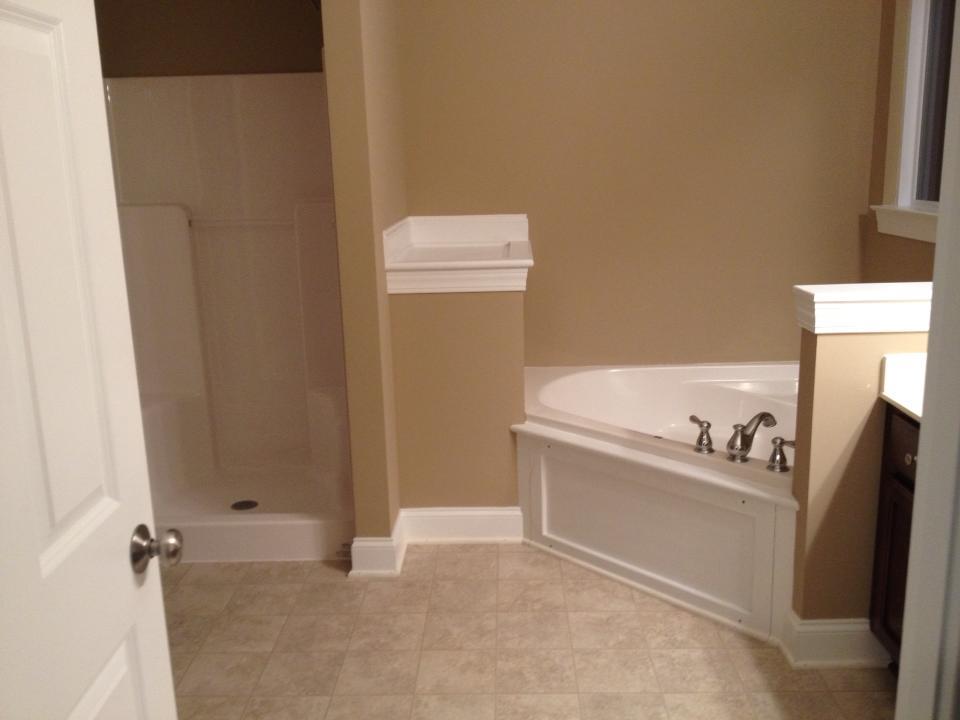 almost over. The house was finished on Friday. We spent the whole weekend wandering around our house, staring at how beautiful it is. The hubby is like a kid at Christmas who absolutely cannot wait until Christmas to open his present. He wanted to start moving things in on Friday, until I gently reminded him we have to sign all of our paperwork first, lest we lose our warranty. He's still trying to get me to budge on that one, but budge I will not. I've waited so long, I'll wait a little bit longer for my warranty.
