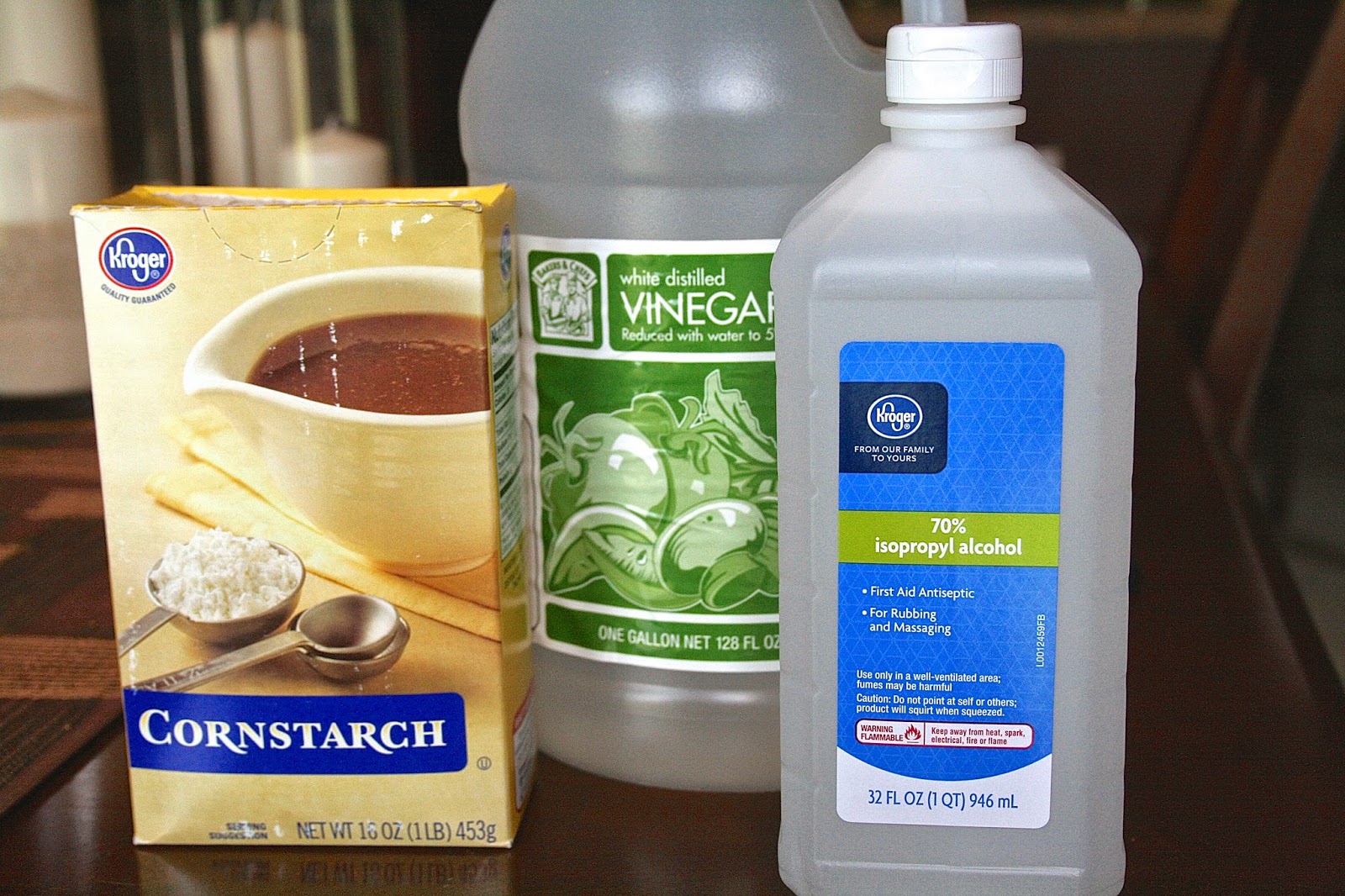 It's easy to make, using only 3 ingredients. The 4th ingredient is water. You mix all the ingredients together, and voila. Homemade glass cleaner. If you aren't fond of the smell (vinegar mixed with alcohol, yum yum!), you could mix in some lemon or orange essential oil. I have a feeling you would need a citrus oil to mask this scent. I'm kind of fond of the smell, it just smells clean to me. I was skeptical upon first using this, but wow. I was quickly converted. This is the least streaky product I've ever tried. Make sure to give this a good shake before each use, as the cornstarch settles to the bottom. My expert cleaning tip is to use this with old newspaper. I use one piece of newspaper to rub it all in over the glass, and leave it kind of damp. I use a second piece of dry newspaper to capture the residue. Using a dry material to finish is key with this cleaner. I think the dry newspaper mopping up the cornstarch is what really makes glass shine when using this.