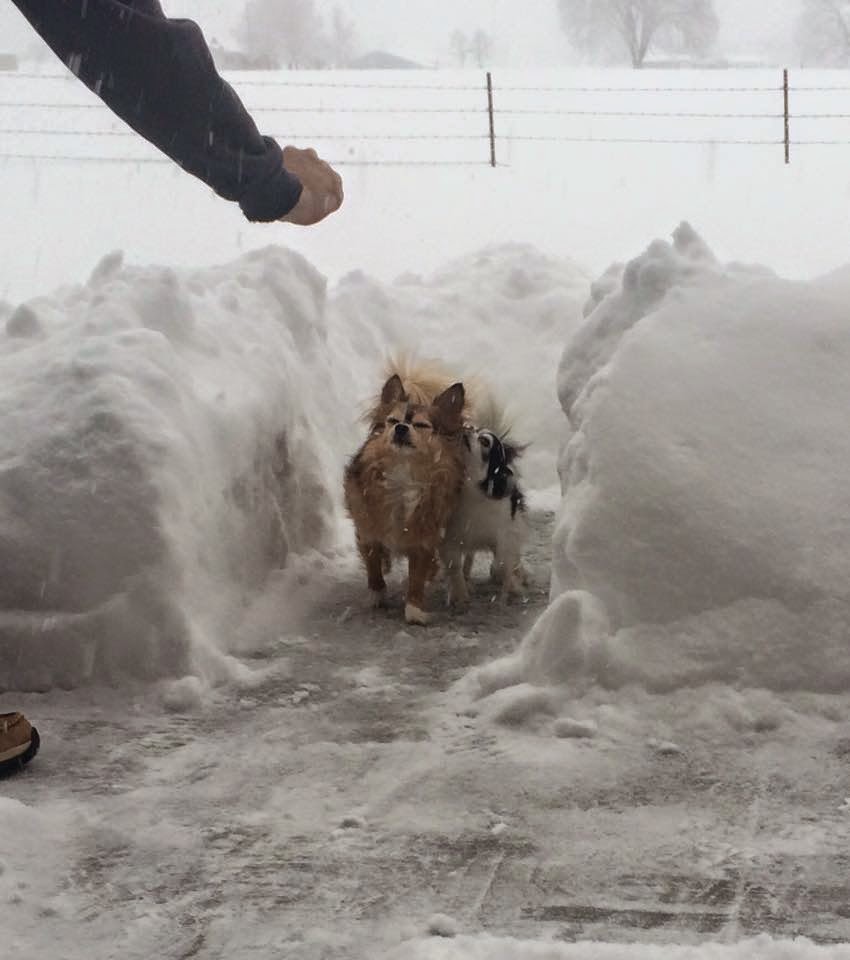 The dogs are not fond of so much snow. Haloti likes a little bit of snow to run in, but it has to be snow he can actually run in. When he gets in this snow, it buries him. Only his little head sticks out. You would think Gizmo would get completely buried, but since he is so light he only sinks in to his head too. Unlike Haloti, however, he gets stuck there. He can't jump or hop out like his brother. It's actually really cute, having to go save your little Chihuahua that's stuck in the snow. Gizmo is always ready to go inside after getting stuck in the snow. He heads straight for his treat, and then his heating pad. We actually had to get another heating pad because the boys were squabbling over the heating pad so much. What can I say? Chihuahuas hate winter.