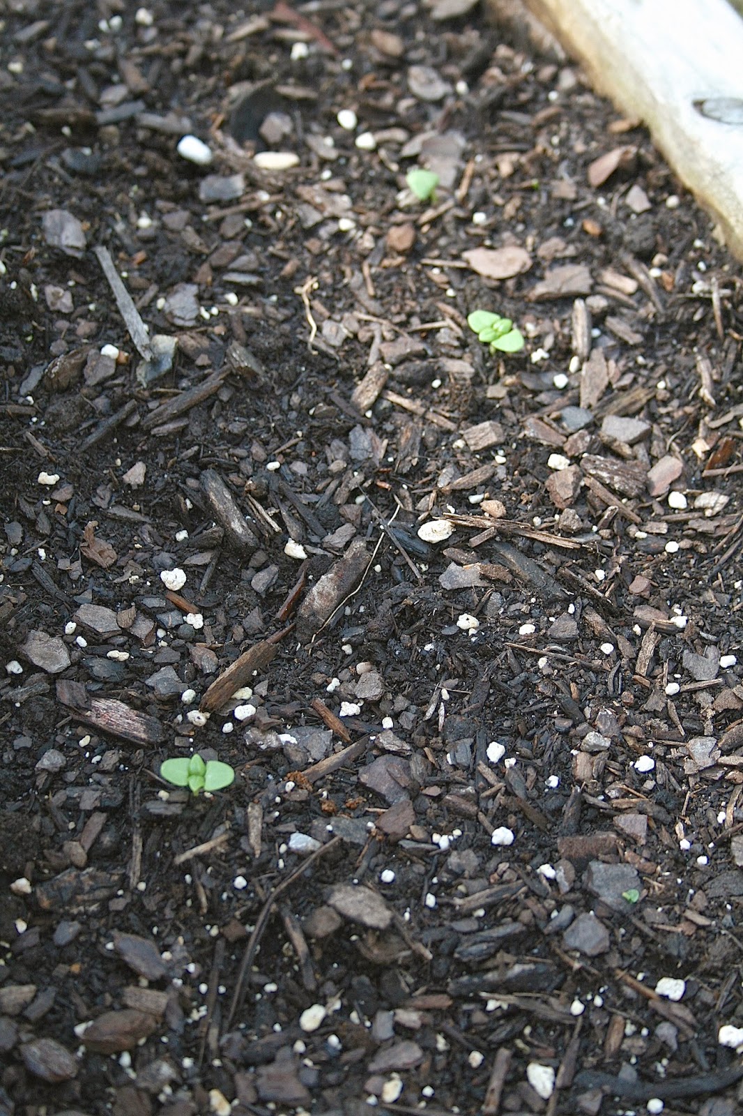 All right, now for that garden! Can you spot the mint seedling here? They are so tiny!