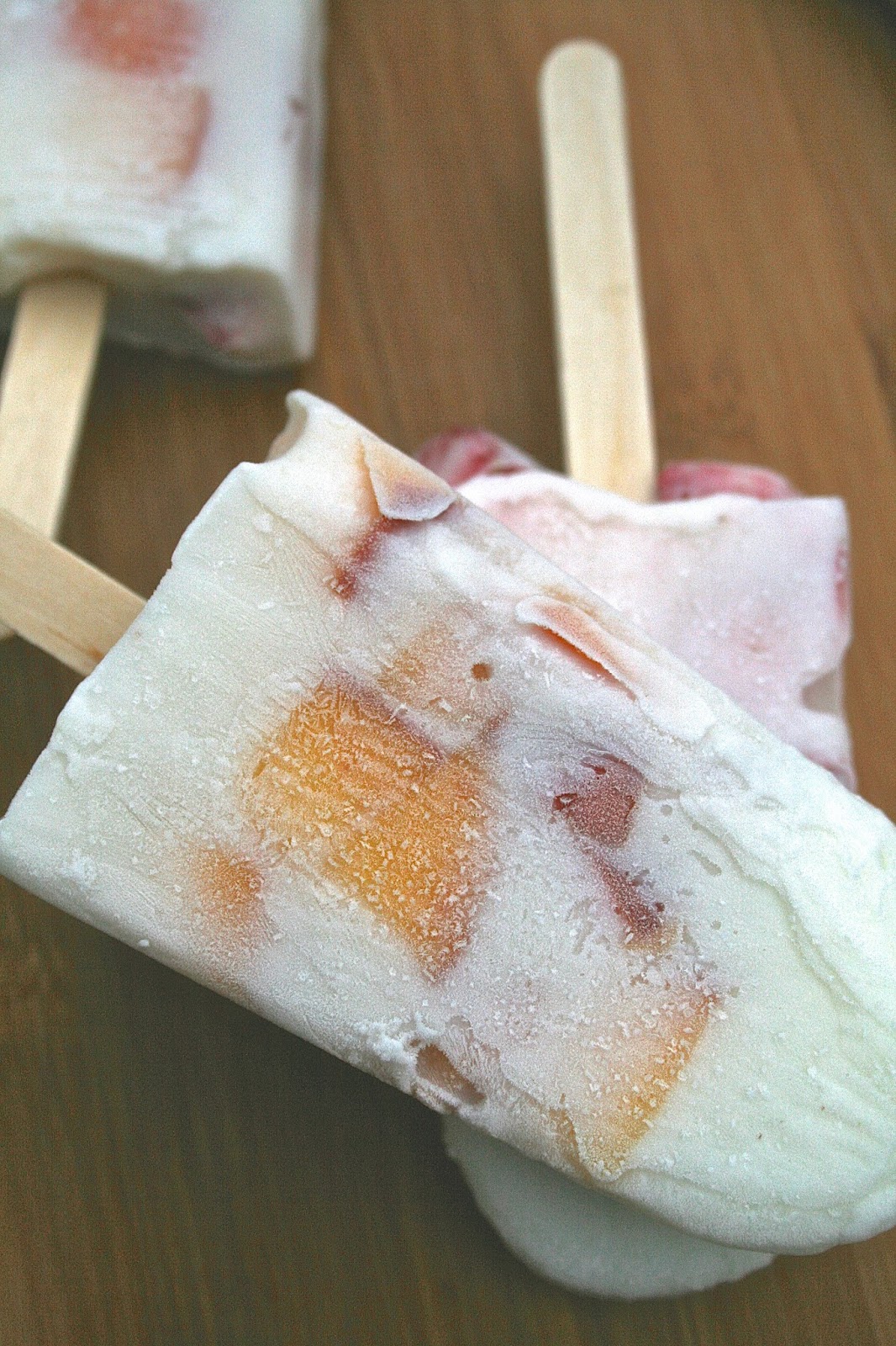 I had overripe strawberries and peaches to use, so that's what ended up in my popsicles.