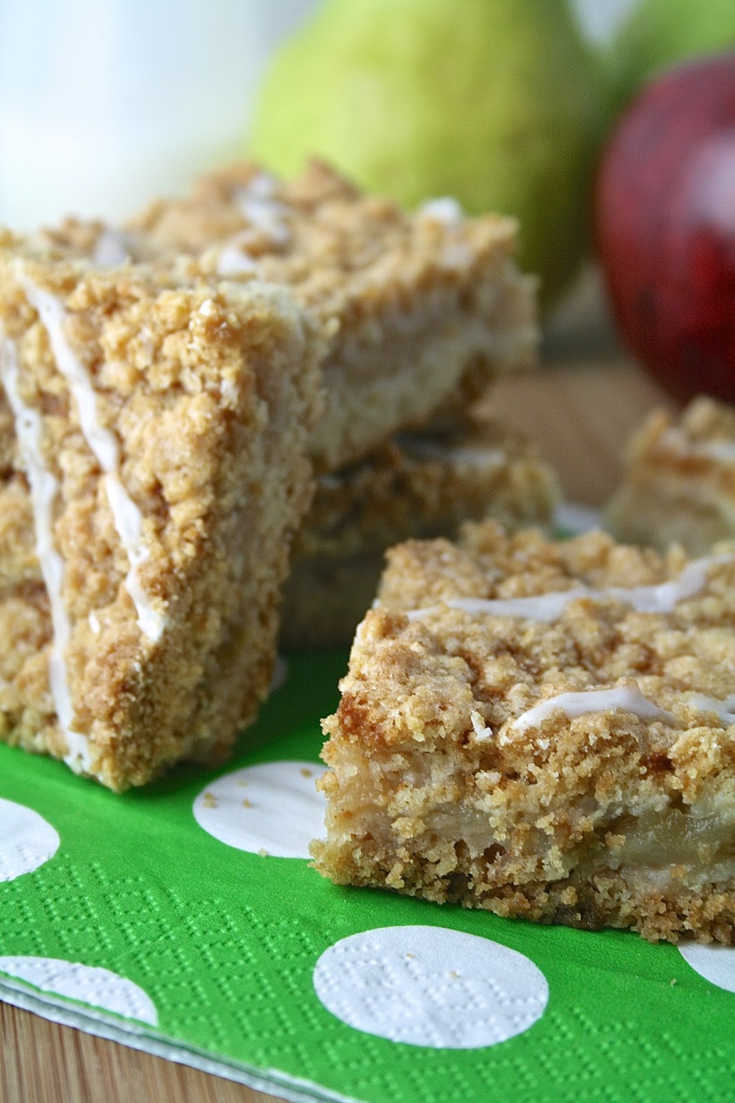 These didn't last long in our house. I always have the best intentions in delivering treats to the hubby's family, but we really did a number on these. Gone in one weekend! The hubby feels similarly about pears as I do, but he really liked these bars too.
