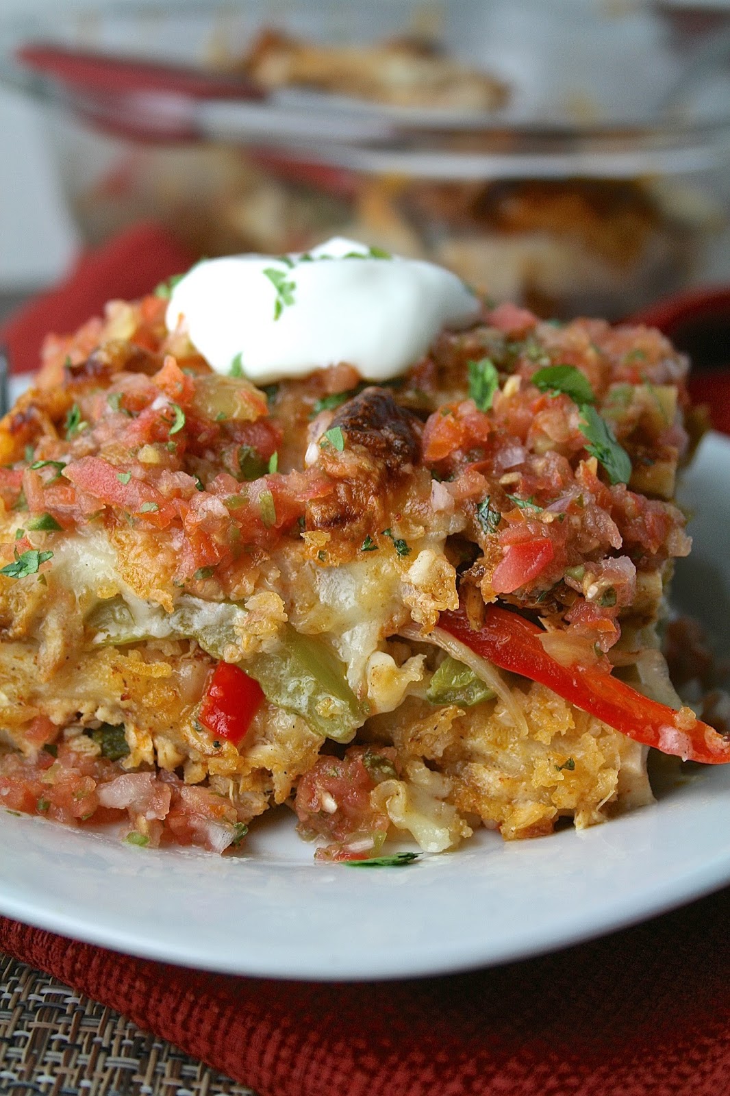 For me, this is comfort food at its best. You know, being a Mexican food-aholic and all. I love chicken fajitas (all kinds of fajitas, really) but I don't order them all that much. For one, they are usually expensive. Second, I don't really like that sizzling hot plate that restaurants bring out. I'm always afraid I'm going to burn myself. So, when it became obvious last week that I needed a Mexican-food fix, I thought why not try out this casserole idea I'd been kicking around for awhile?