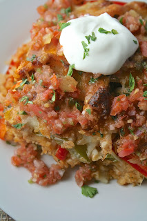 For me, this is comfort food at its best. You know, being a Mexican food-aholic and all. I love chicken fajitas (all kinds of fajitas, really) but I don't order them all that much. For one, they are usually expensive. Second, I don't really like that sizzling hot plate that restaurants bring out. I'm always afraid I'm going to burn myself. So, when it became obvious last week that I needed a Mexican-food fix, I thought why not try out this casserole idea I'd been kicking around for awhile?