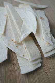 3 soft taco size tortillas, thickly sliced