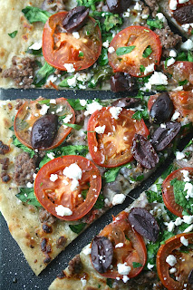 I would have never thought to make Greek pizza!! Perfect! It's much better to post when your coffee fueled than not!
