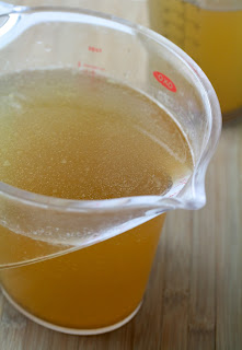 Freshly made homemade chicken stock. Because we eat a lot of rotisserie chickens and turning the bones into broth is a no-brainer.