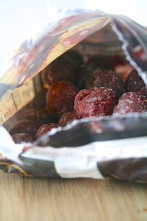 I also use fresh fruit in my smoothies. I typically just buy whatever berries are on sale. Any combination of berries will do, but my favorite is raspberries, blackberries, and blueberries. Although, I must admit, I can't wait till I have strawberries in the garden to use in my smoothies! Since I was using all frozen cherries this go-round, I decided to go with my classic favorite trio of berries.