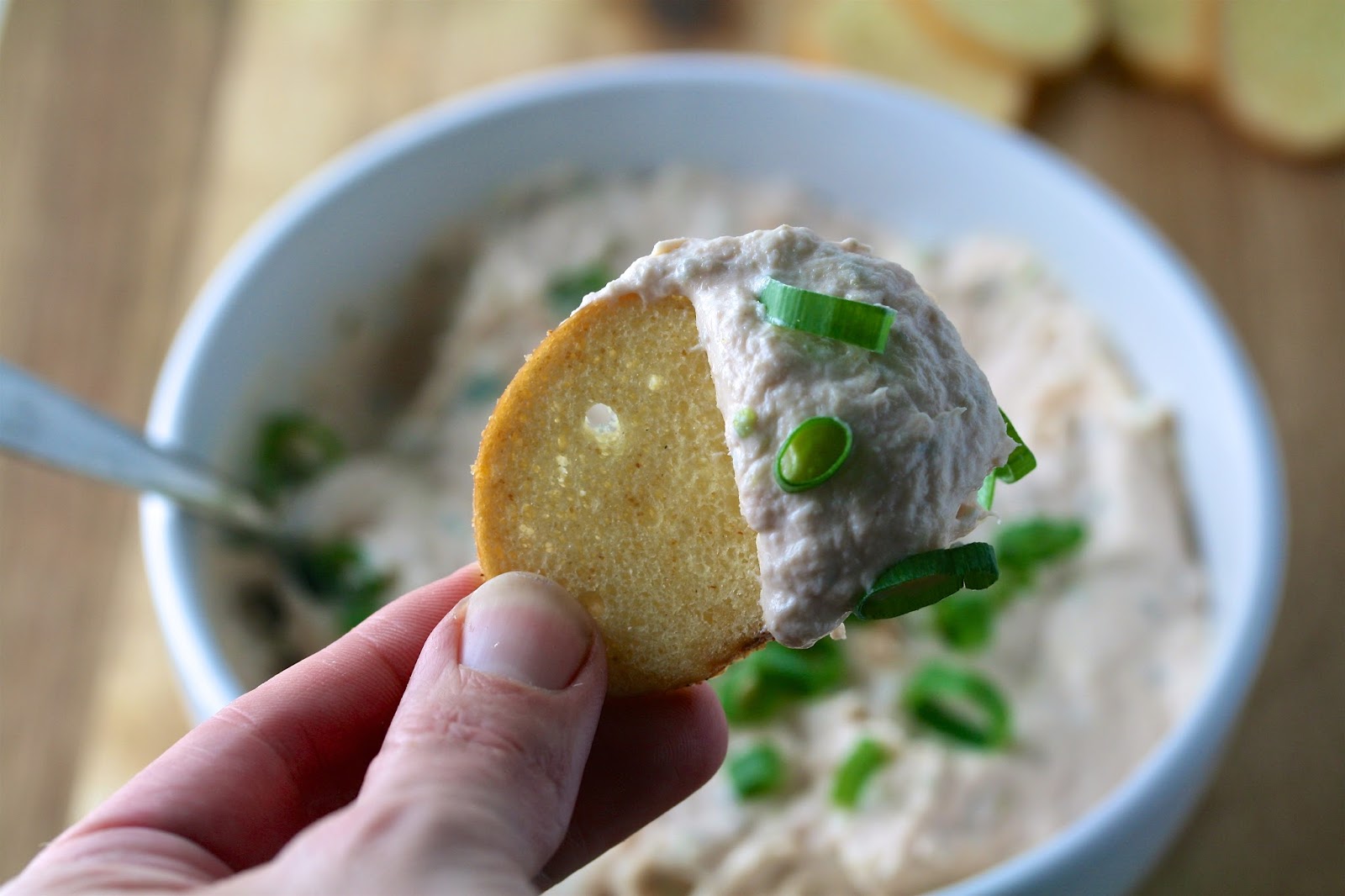 3. Move dip into a bowl and top with more thinly sliced green onion. Chill until serving. Serve with bagels, crackers, or bagel chips.