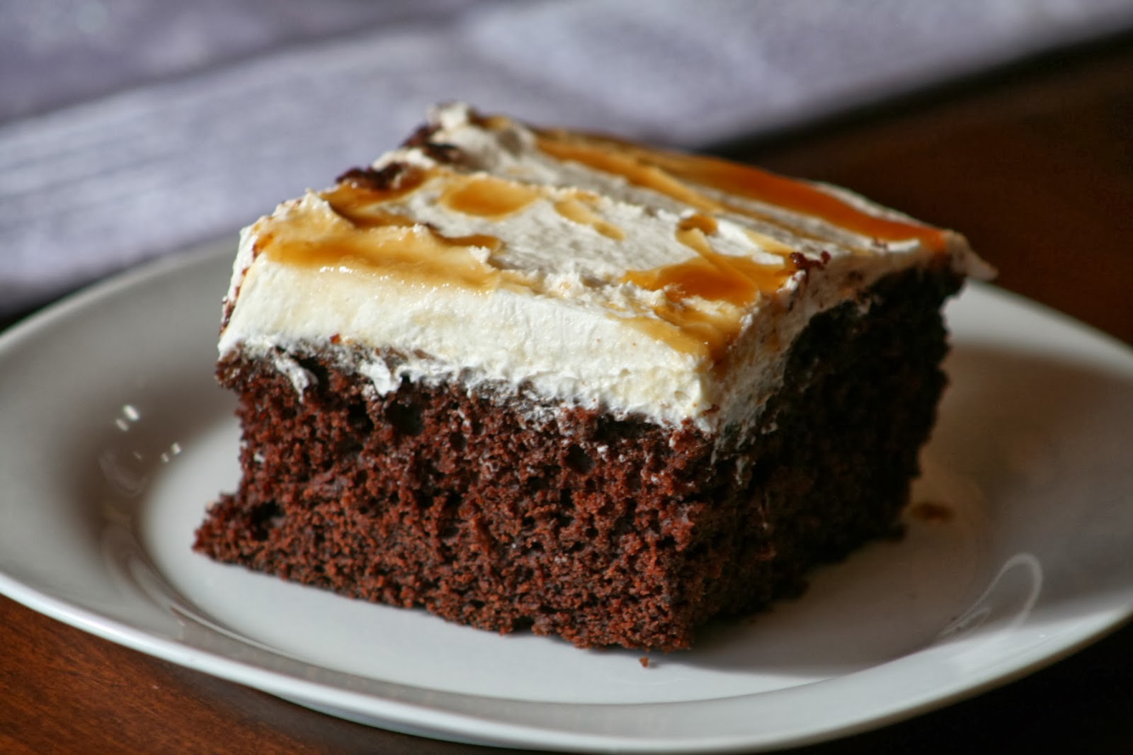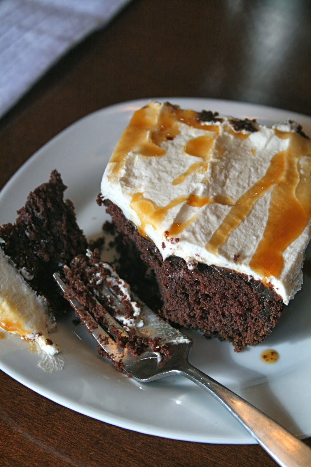 I can't say enough good things about my birthday cake. Maybe it's because this is the first birthday cake I've ever made myself, or maybe it's just because this cake is so dang awesome. It's chocolatey, moist, and fragrant from the strong coffee. The whip cream frosting with a caramel drizzle adds the perfect final touch to this likeness of the caffeinated beverage. I honestly can't stop eating it! One other interesting tidbit- I challenged myself to make a birthday cake using only ingredients I had on hand. I'm proud to announce that I completed that challenge, thanks to a can of Dulce de leche that I just happened to have on hand.