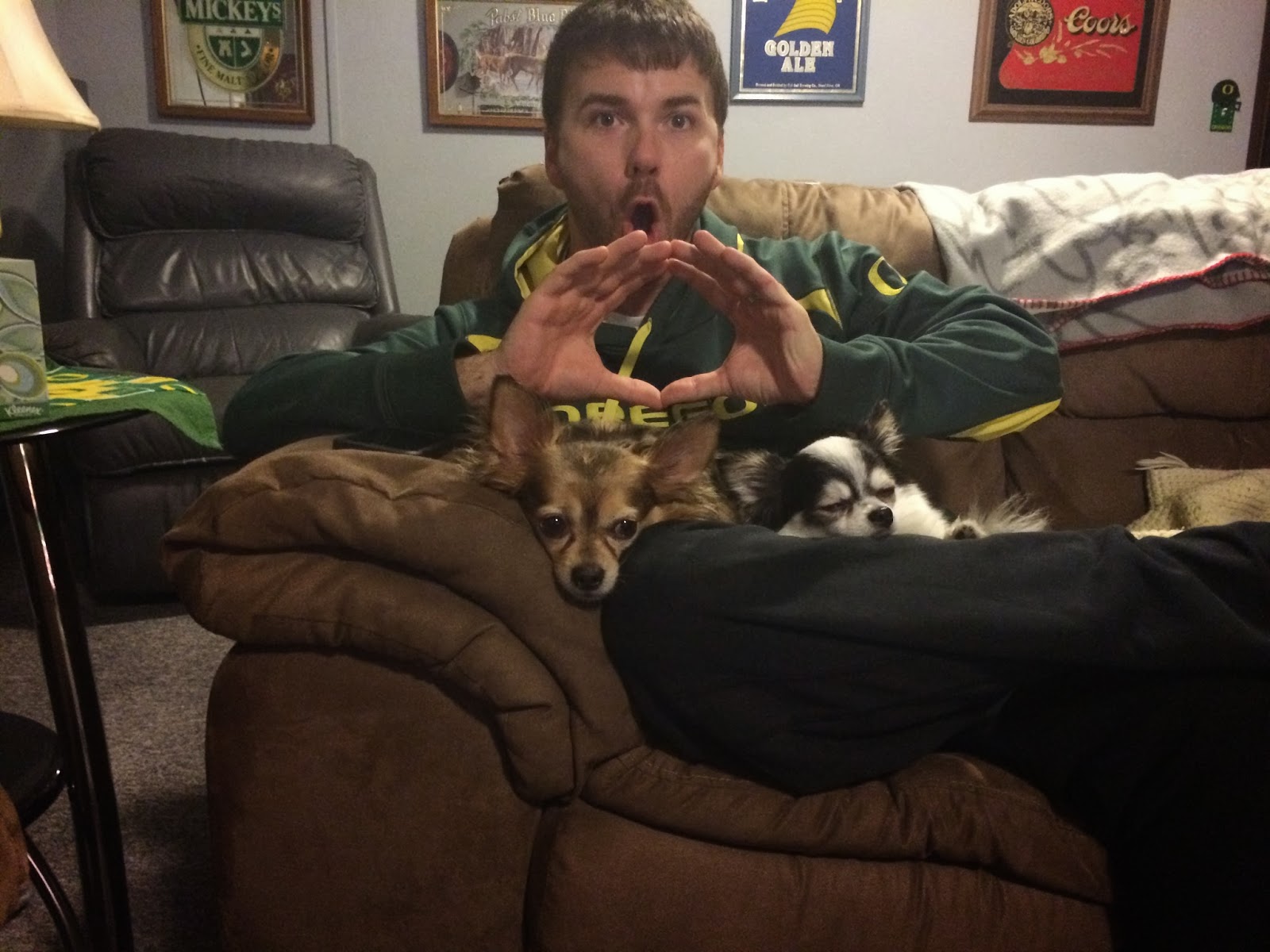 Cheering on the Ducks for the ill-fated Stanford game. Boo.