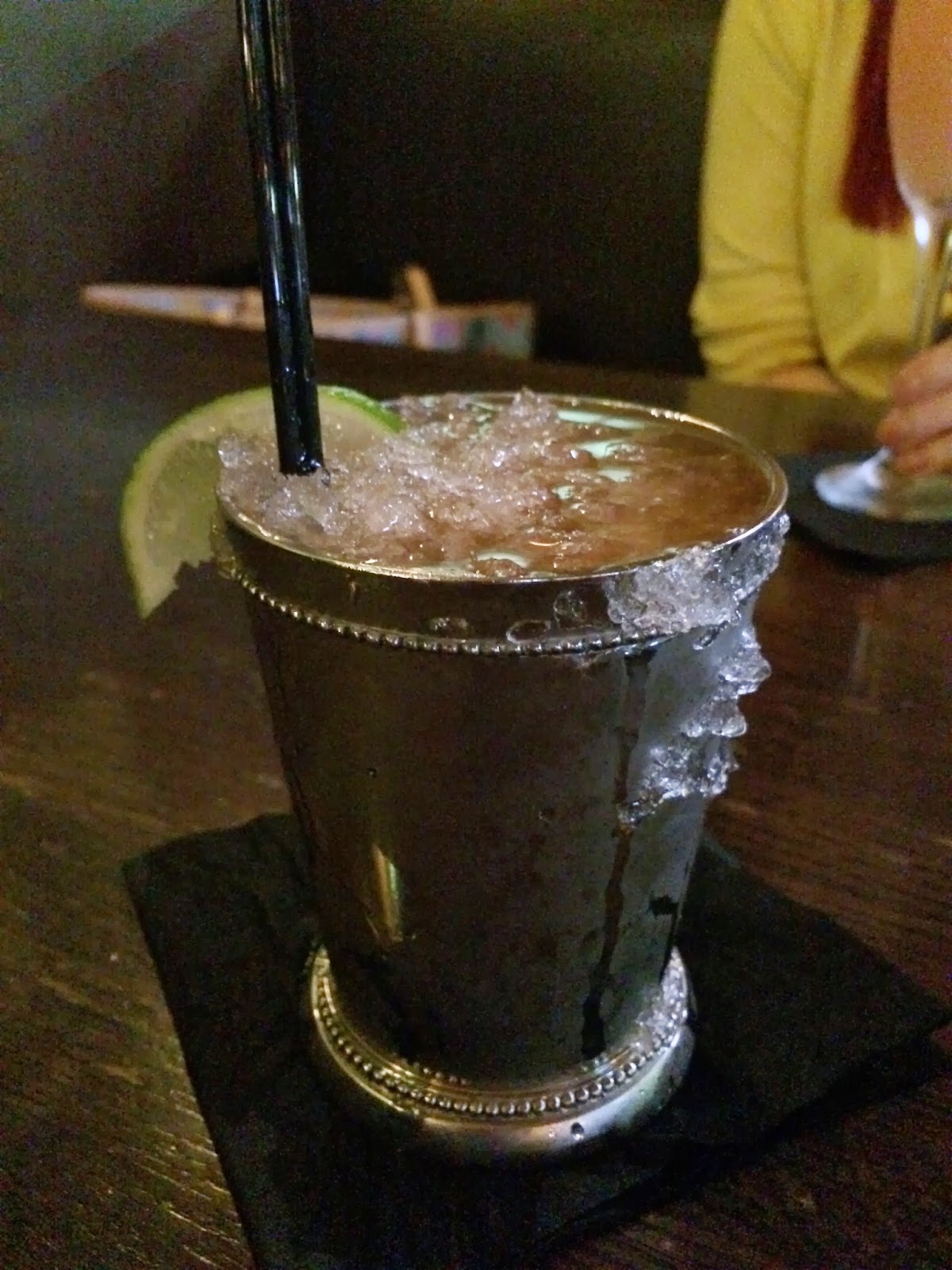 A "Kentucky Jenny" from Bar 101 in Corvallis. I wish I remembered exactly what was in it, but I think it was bourbon, ginger beer, and bitters over shaved ice. Like a snow cone. I just had to try it :) It was pretty good!