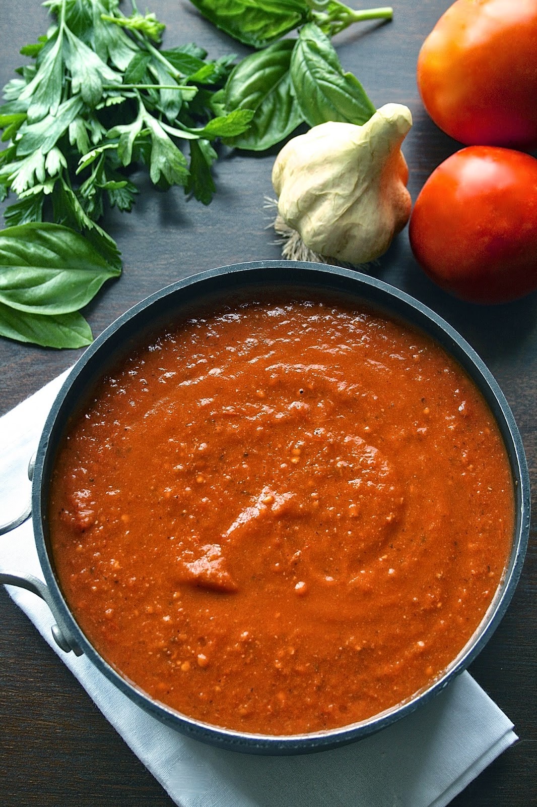 6. Add water, salt, pepper, red pepper, and cheese rinds to the sauce. Bring to a boil, then lower heat and simmer for as long as you like. I prepare the sauce early in the day and let it simmer all afternoon.