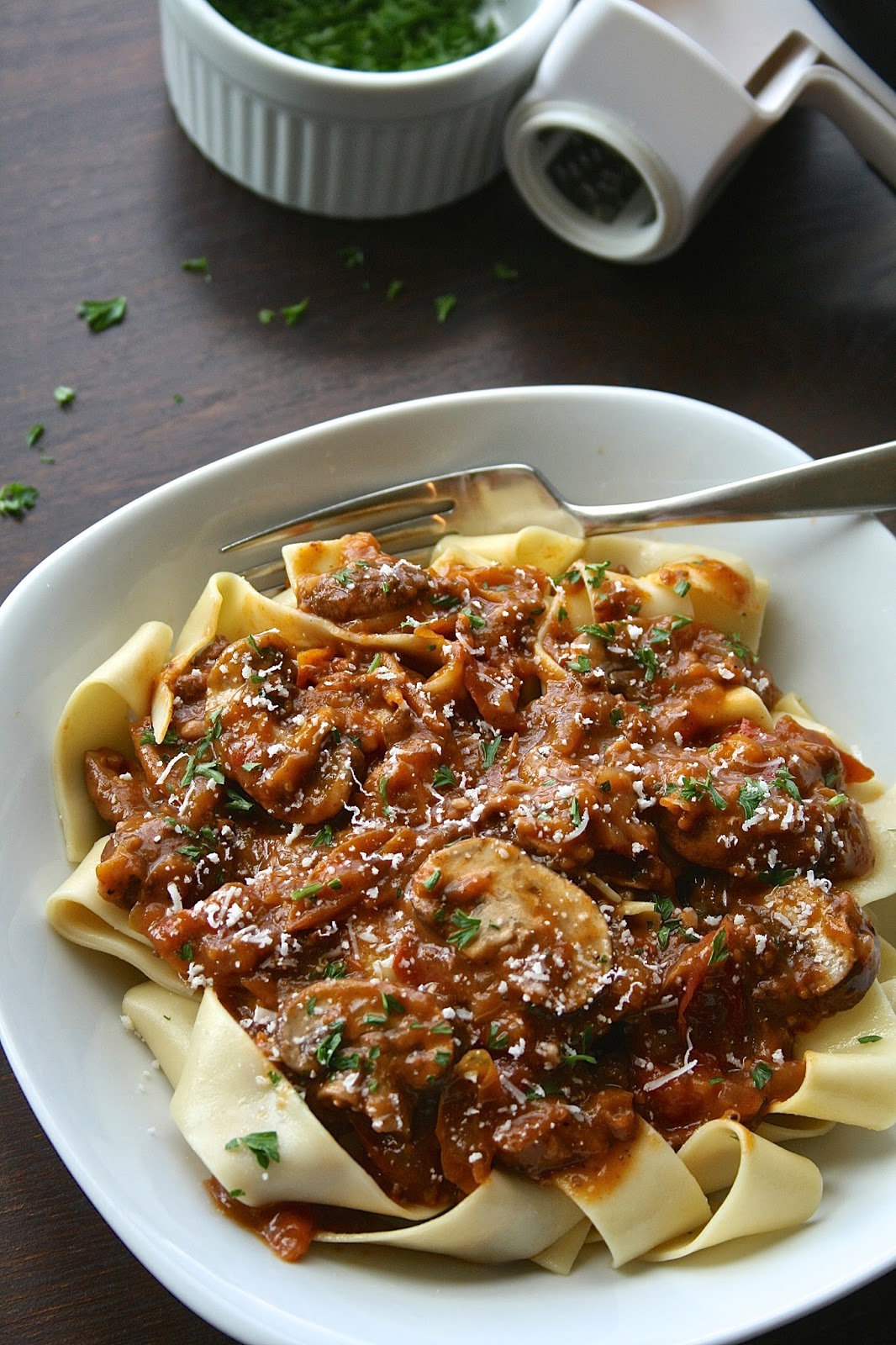 And fall is the perfect time for a bowl of this pasta! It's true comfort food. Roasted tomatoes. Roasted garlic. Baby bella mushrooms. Thick and chewy pappardelle pasta. And who can resist a sprinkle of garden-fresh parsley? Not this girl. This sauce takes a bit of time, but I think it's so worth it. For you busy mom's (and dad's!) this might be a weekend recipe for you. It's also one that I don't think anyone would object to. And a great way to use up a ton of cherry tomatoes. I know a lot of you out there are stuck with those!