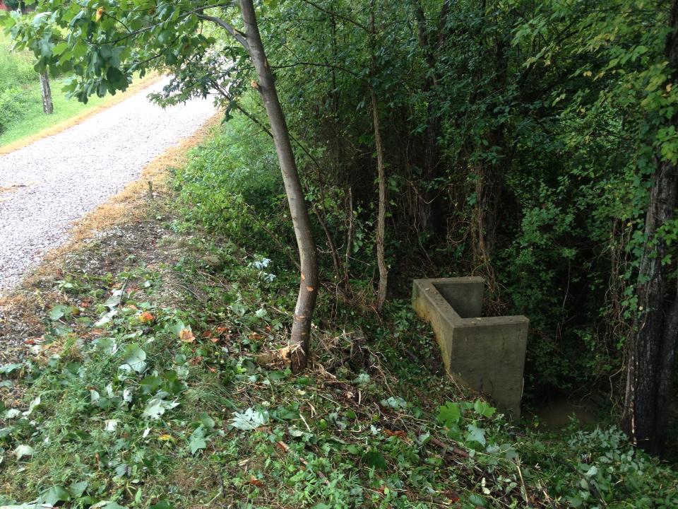 We've got almost 2 acres of property, and it seems at times that the majority of the property is overgrown in vegetation. The hubby does as much as he can, but the weeds grow fast. Needless to say, the hubby is weed eating on a lot of his days off. Last weekend, he cleared the weeds from the this retaining wall on our property to find a blast from the past.