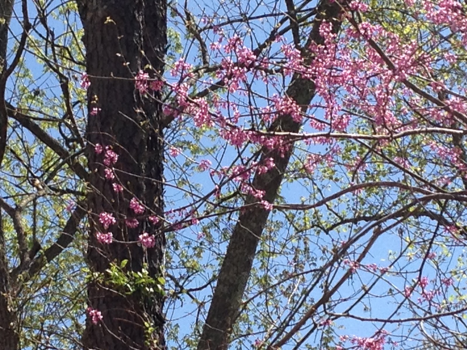It seems the kids flew into Kentucky on the last heels of winter. The day they flew in is the last day we got a coating of snow. It was a little rainy and overcast for most of their trip, but we did get a couple of days of "shorts" weather. We definitely took advantage of this, getting outside for walks, hiking to the back of the hubby's grandfather's property, and sitting outside splitting a bottle of wine.