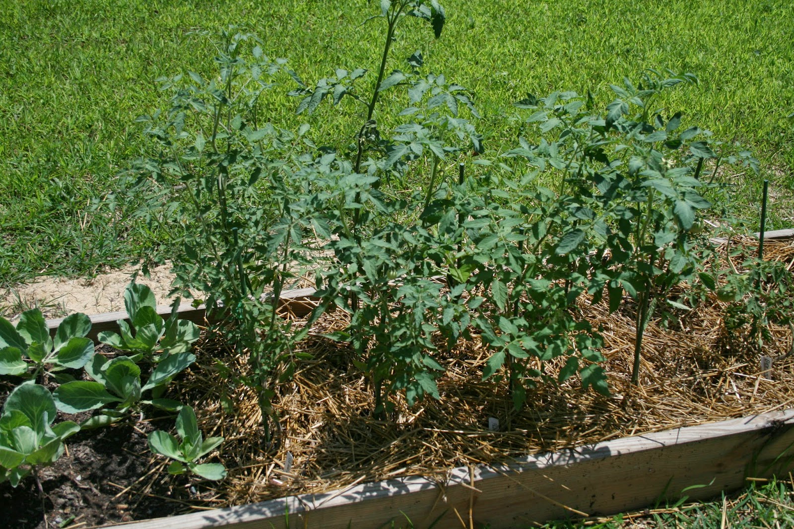 The raised bed tomatoes. Just for comparison, here's a picture of when we first planted those: