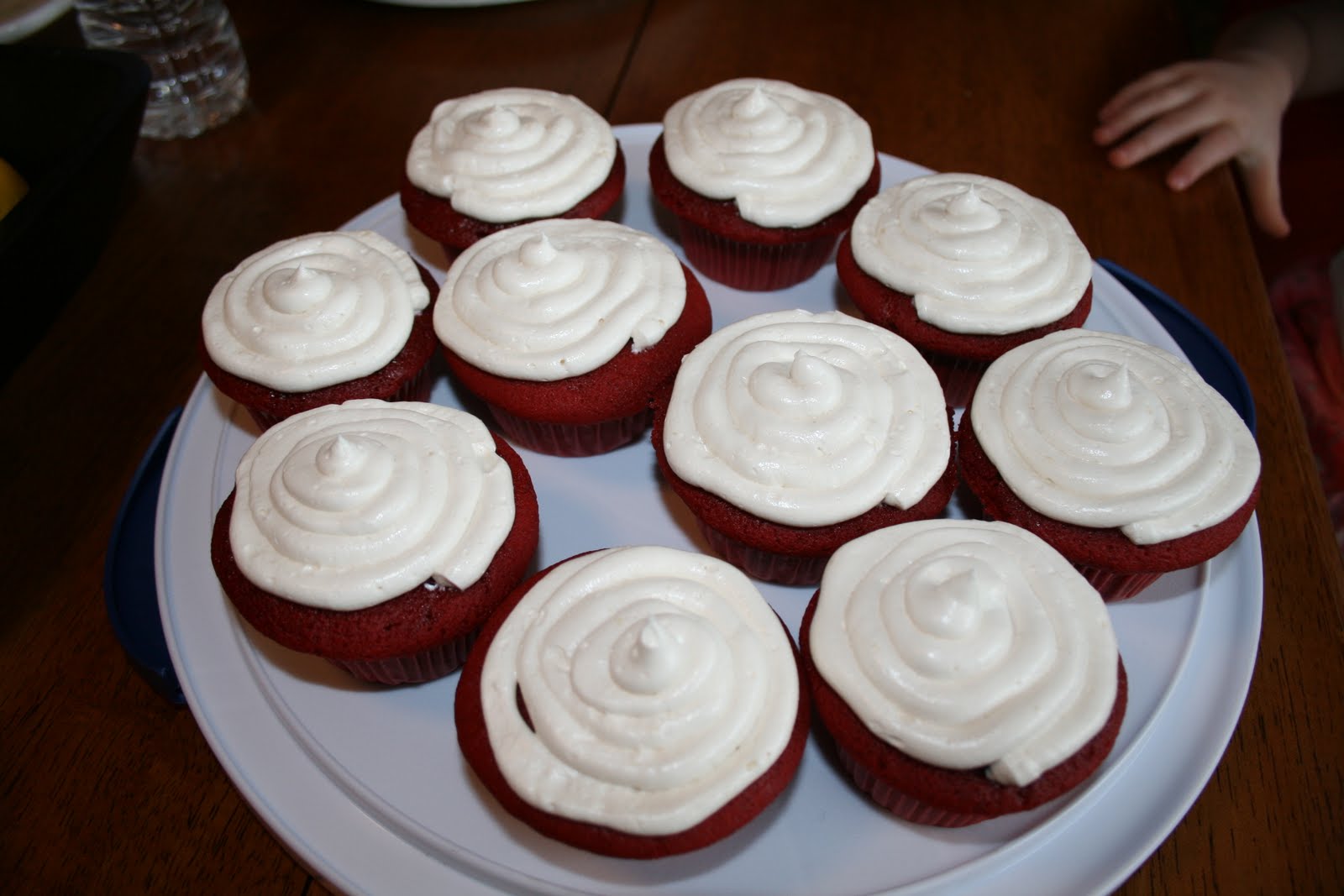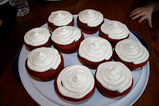 My first concoction was a Boston cream pie. What a lesson! My cakes did not rise, which I later found out was most likely due to the fact that my baking powder was expired. I learned to check my expiration dates on my products. I also over cooked my custard which resulted in the cream part of my pie being somewhat... dry and lumpy. Boo. Another valuable lesson learned. My next project was chocolate chip cupcakes, which actually turned out fantastic! I learned that cupcakes are ALMOST impossible to screw up. Keeping up with the cupcakes, my husband asked me to make Red Velvet cupcakes for his mom's birthday. These also turned out great!