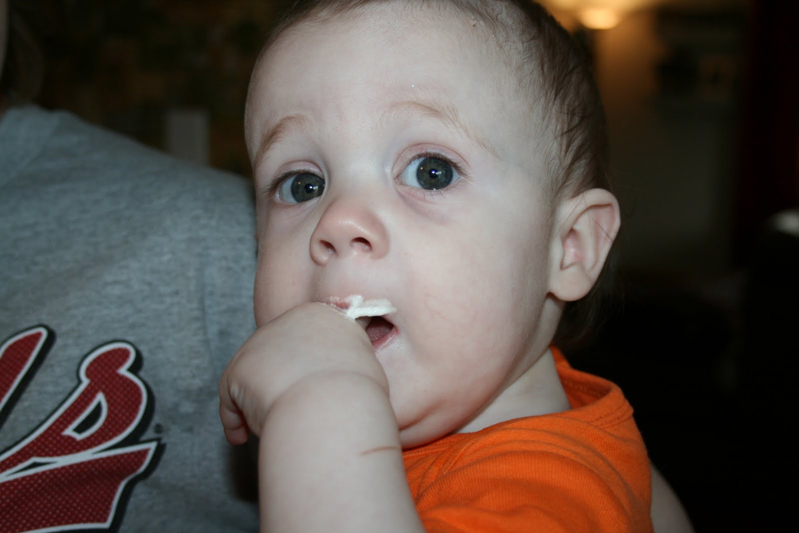 By the weekend, the weather cleared up. Saturday was overcast but the temperature was around 80 degrees and it didn't rain a drop. Perfect since it was our nephew Brock's first birthday! We headed out to Grayson (about a 25 minute drive from Ashland) to celebrate at Jerame's sister's house. It was a wonderful party, the birthday boy was well behaved and  really didn't even make that much of a mess with his cake! Just for comparison I have posted a pic from our other nephew Gavin's first birthday as well as one of Brock.