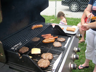 Our 4th of July feast! After our elaborate Memorial Day Weekend, everyone decided that we didn't even need half as much food! We ended up going old-school cookout with juicy hamburgers and charred hot dogs. Martha made a delicious homemade potato salad that was thick and creamy and full of fresh hard boiled eggs. Throw in some potato chips and mini 4th of July cupcakes and we had a truly Americana meal