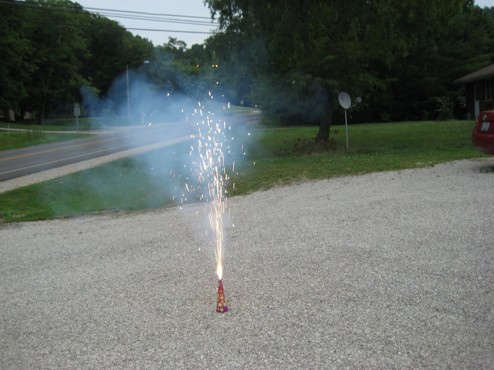 Setting off fireworks in the front yard